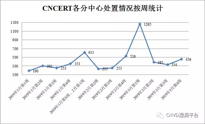 图4 CNCERT各分中心处置情况按周统计